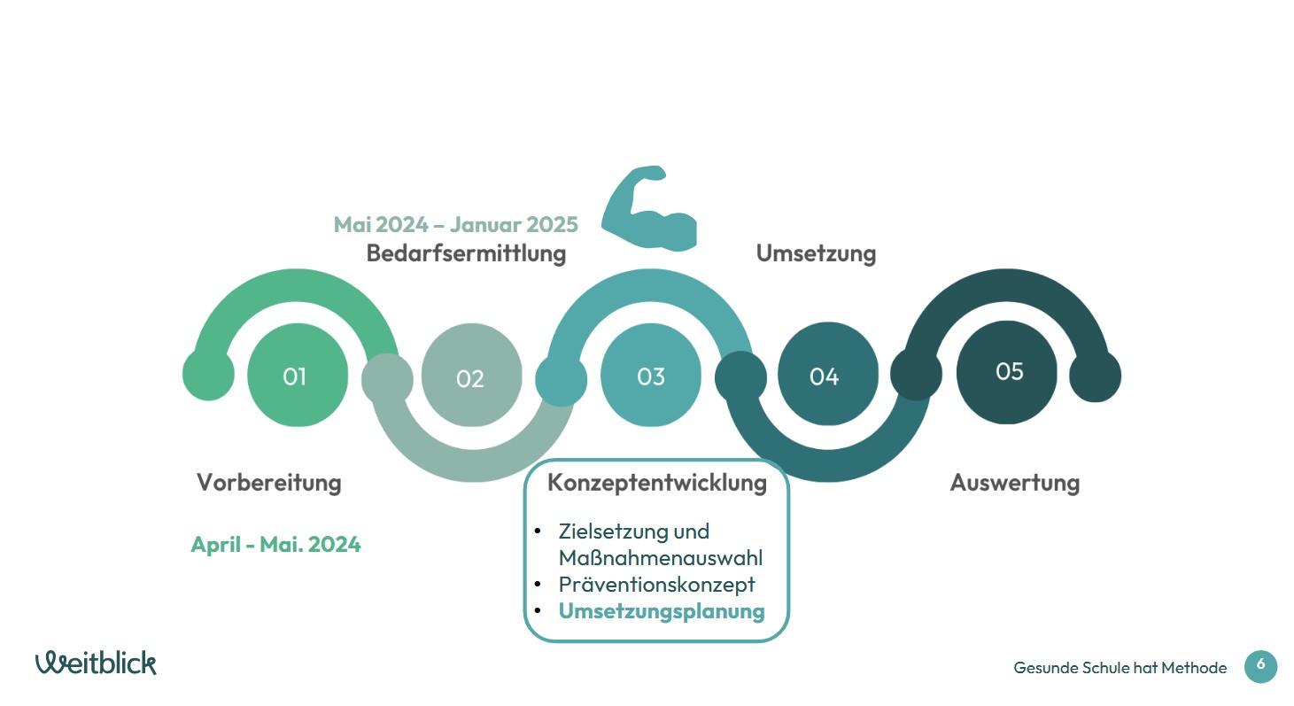 Die Entwicklung des Präventionskonzepts erfolgte im Rahmen von Weitblick – Gesunde Schule hat Methode mit Unterstützung der FINDER e. V. Eine Steuergruppe mit Lehrkräften, Eltern, Schülerinnen und Schülern hat den Prozess koordiniert und begleitet.